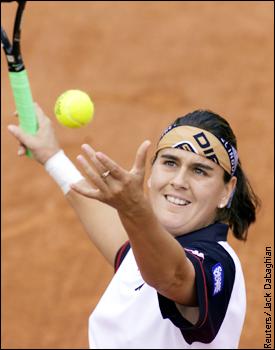 Spain's Conchita Martinez serves against Italy's Silvia Farina during their match at the French Open. Martinez defeated Farina, 6-1, 6-0.