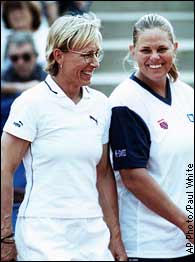 |  | | Martina Navratilova, left, and her doubles partner Mariaan Swardt of South Arfica were all smiles during their match Tuesday. |