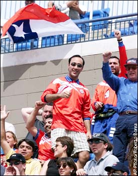 Fans of Marcelo Rios, of Chile, cheer during his win over George Bastl, of Switzerland. Rios won 4-6, 6-3, 6-2, 6-3.