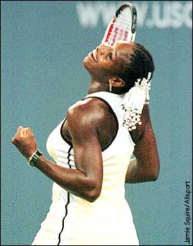 Serena Williams celebrates a point over Monica Seles during their quaterfinal match. Williams went on to defeat Seles 4-6, 6-3, 6-2 and will meet Lindsay Davenport in Williams first semifinals in a major.