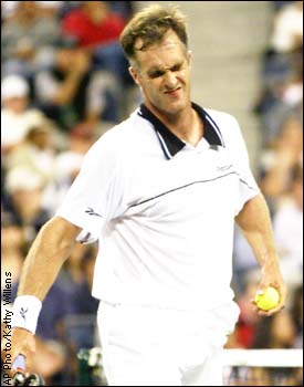Todd Martin grimaces during the fifth set of his match against Andre Agassi. Agassi won the match, 6-4, 6-7 (5-7), 6-7 (2-7), 6-3, 6-2.