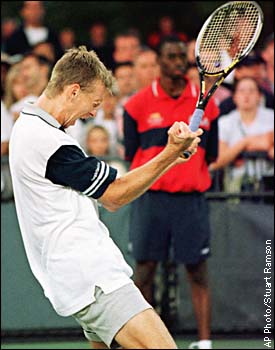 Wayne Arthurs, of Australia, reacts during his win over Alex Corretja, of Spain, at the U.S. Open tennis in New York. Arthurs won 6-3, 6-4, 1-6, 4-6, 7-6 (8-6).