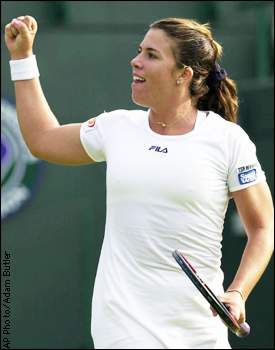 Jennifer Capriati, reacts after defeating Belgium's Dominique Van Roost at the end of their women's singles first round match at Wimbledon, Tuesday. Capriati won the match 6-2, 6-4.