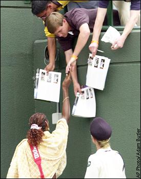 Venus Williams reaches to sign autographs after her victory over Ai Sugiyama of Japan. Williams won the match 6-1, 6-4.