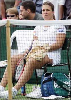| | Classic concentration Jennifer Capriati sits while protesting against brass band music coming from the Centre Court during her match against Yayuk Basuki. The music was part of a parade ceremony honoring former champions. Capriati went on to win the match 7-6 (7-4), 6-0.
