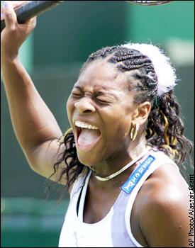 Serena Williams of the United States reacts as she takes a point from Tamarine Tanasugam of Thailand. Williams won the match 6-1, 6-1.