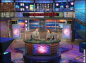 Linda Cohn and Trey Wingo try out the new set, which will be unveiled on air during SportsCenter at 6 p.m. ET Friday, August 18.