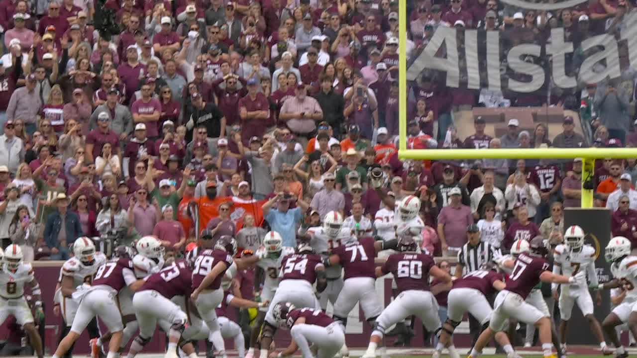 Miami's Rueben Bain Jr. blocks Texas A&M FG attempt